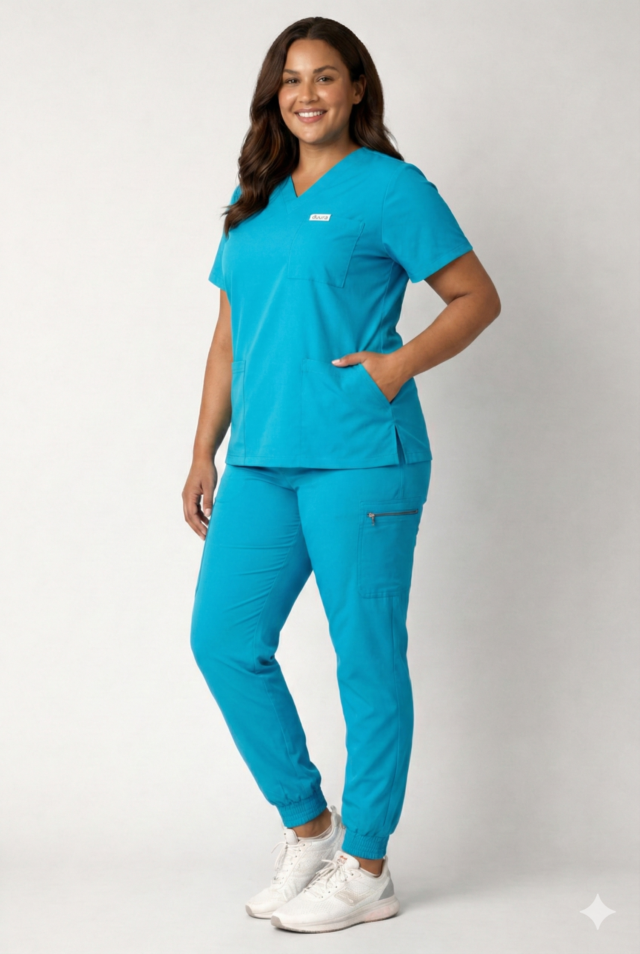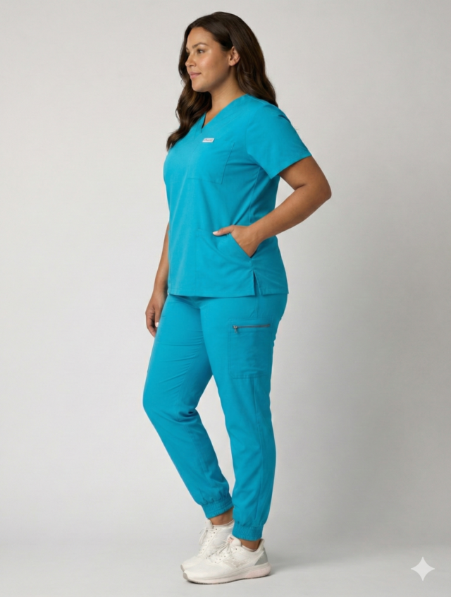 The complete matching set, modern V-neck top and jogger pant in the same color. Built for motion, breathable comfort, and real utility.