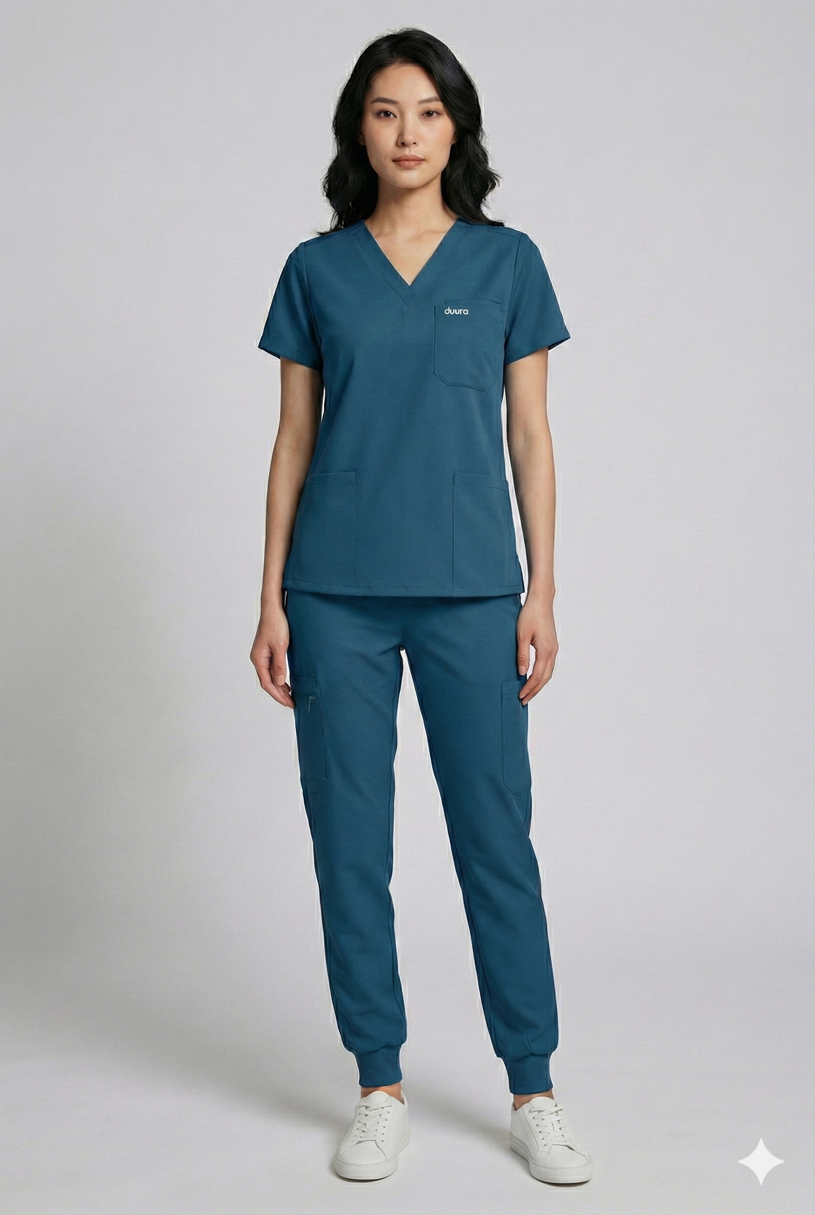 The complete matching set, modern V-neck top and jogger pant in the same color. Built for motion, breathable comfort, and real utility.