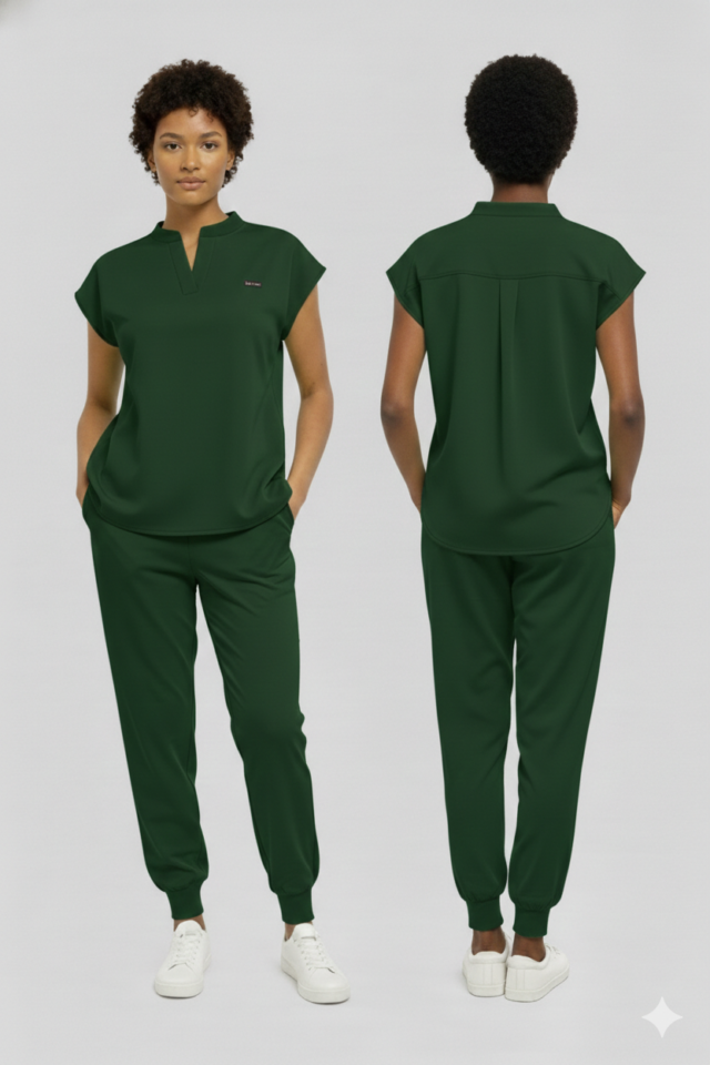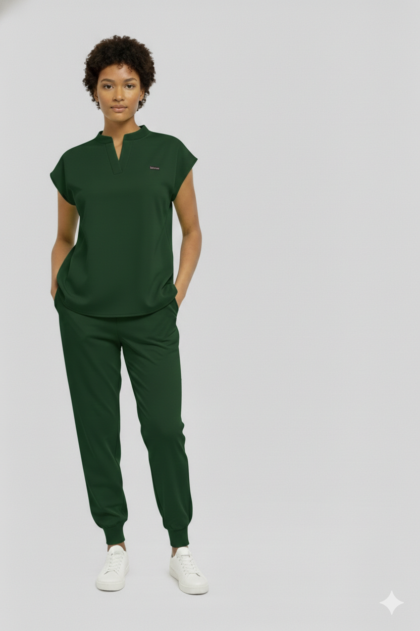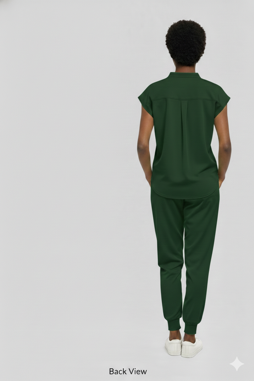 The complete matching set, modern V-neck top and jogger pant in the same color. Built for motion, breathable comfort, and real utility.