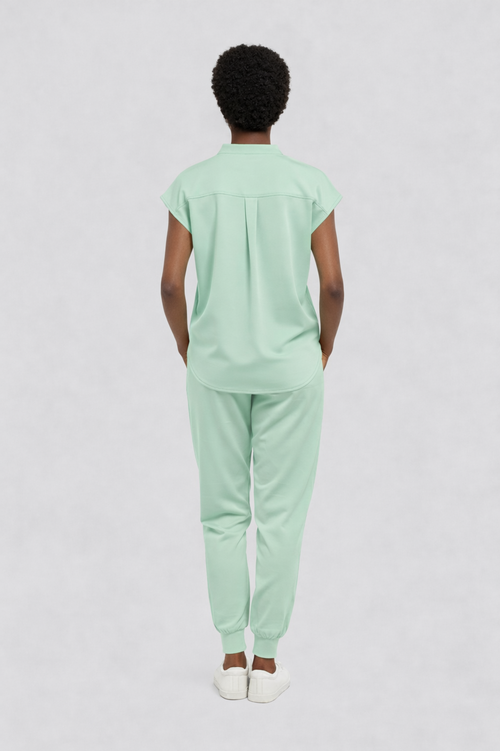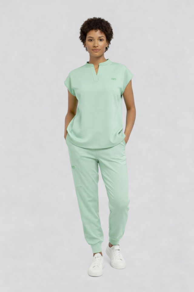 The complete matching set, modern V-neck top and jogger pant in the same color. Built for motion, breathable comfort, and real utility.