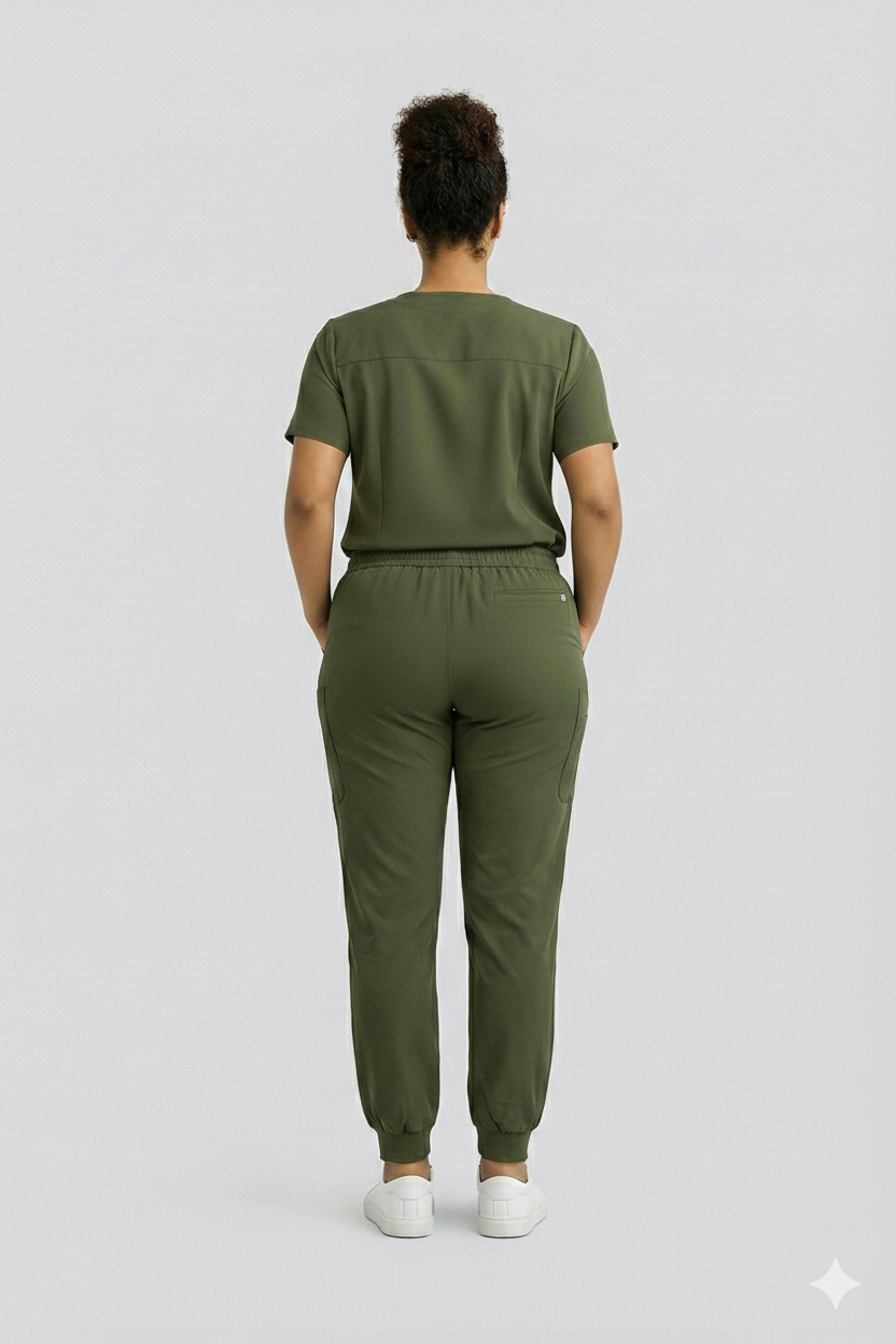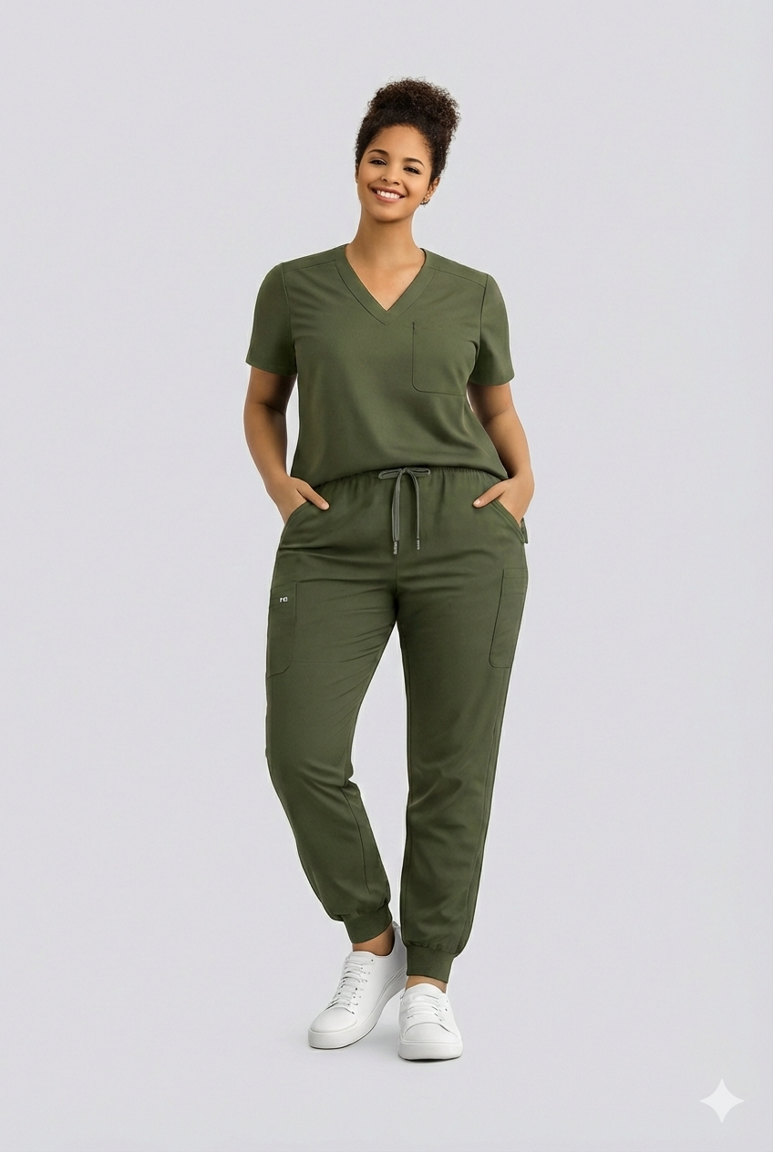 The complete matching set, modern V-neck top and jogger pant in the same color. Built for motion, breathable comfort, and real utility.